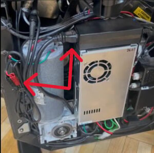retirez d’abord le capot latéral gauche de l’appareil. Un guide de démontage est disponible ici. Une fois le capot retiré, rebranchez le cordon d’alimentation de l’enceinte. Vérifiez également la connexion noire et rouge pour vous assurer qu’elle n’est pas déconnectée. Ces connexions sont indiquées sur l’image ci-dessous. Si le voyant bleu n’est pas allumé, veuillez contacter l’équipe Support.