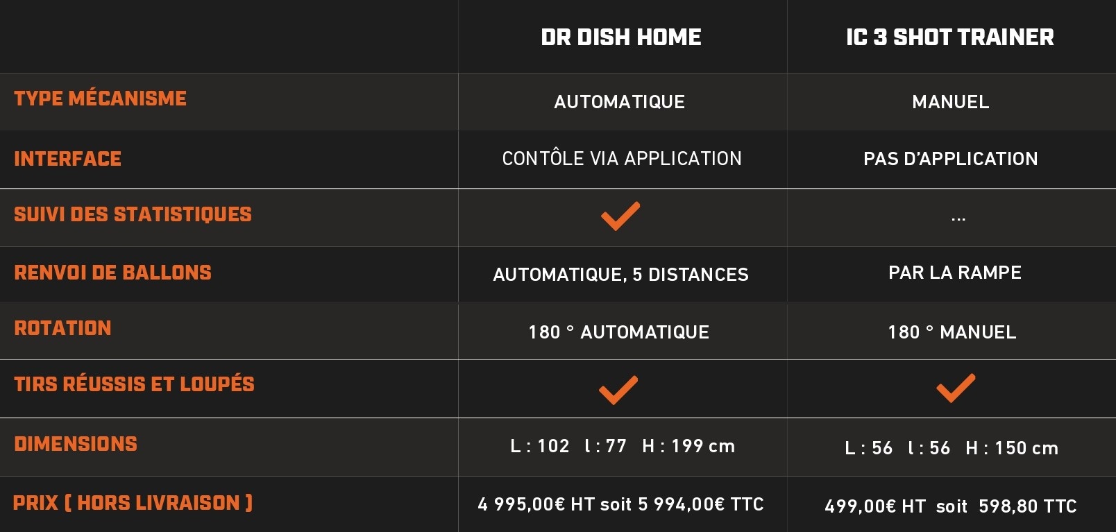 ENTRAÎNEMENT À DOMICILE VOIR DR DISH HOME FORMATION PROFESSIONNELLE DANS VOTRE COURDécouvrez la première machine de tir de basket-ball entièrement automatisée conçue spécifiquement pour la maison TIR À HAUTE RÉPÉTITION À DOMICILEDécouvrez la première machine de tir de basket-ball entièrement automatisée conçue spécifiquement pour la maison VOIR DR DISH IC3 OFFICIELLEMENT APPROUVÉ PAR CHOISISSEZ VOTRE PARTENAIRE D’ENTRAÎNEMENT QUALITÉ PROFESSIONNELLE À DOMICILETRAVAILLEZ AVEC NOTRE ÉQUIPE POUR CHOISIR UN MODÈLE UTILISÉ PAR LES CLUBS PRO ET LES CENTRES DE FORMATION POUR VOTRE MAISON CT + ALL STAR + REBEL + COMPARATEUR