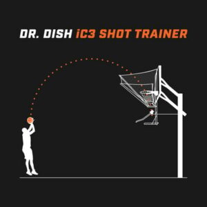 Le iC3 Shot Trainer est le rebondisseur manuel du Dr Dish, pivotant à 180 degrés pour offrir aux joueurs une grande flexibilité dans leur position de tir. Avec ses dimensions de 55,9 cm x 55,9 cm x 150 cm et sa structure tubulaire en acier, l’iC3 est compact pour un rangement optimal et ne pèse que 16,9 kg, ce qui facilite sa portabilité. Le filet, situé à 43,2 cm au-dessus du panier, entraîne les joueurs à effectuer des tirs en arc pour une meilleure technique, avec un angle d’attaque à 45 degrés.