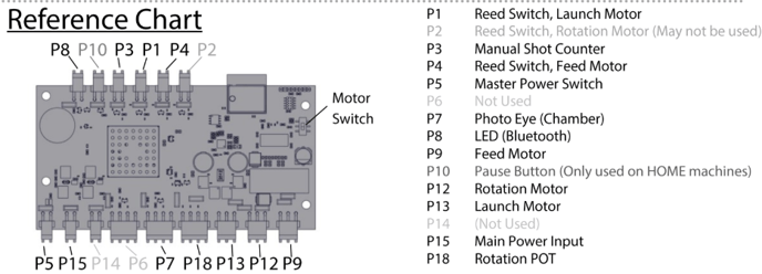 - Test de la cellule photoélectrique – Veuillez vous assurer que tous les ballons de basket sont retirés de la machine. Dans le même menu de diagnostic qu’à l’étape 2, localisez la cellule photoélectrique d’alimentation. Elle devrait être désactivée. Pour la tester, couvrez la cellule photoélectrique avec votre main ; elle devrait passer de Marche à Arrêt. Si ce n’est pas le cas, passez à l’étape 3.