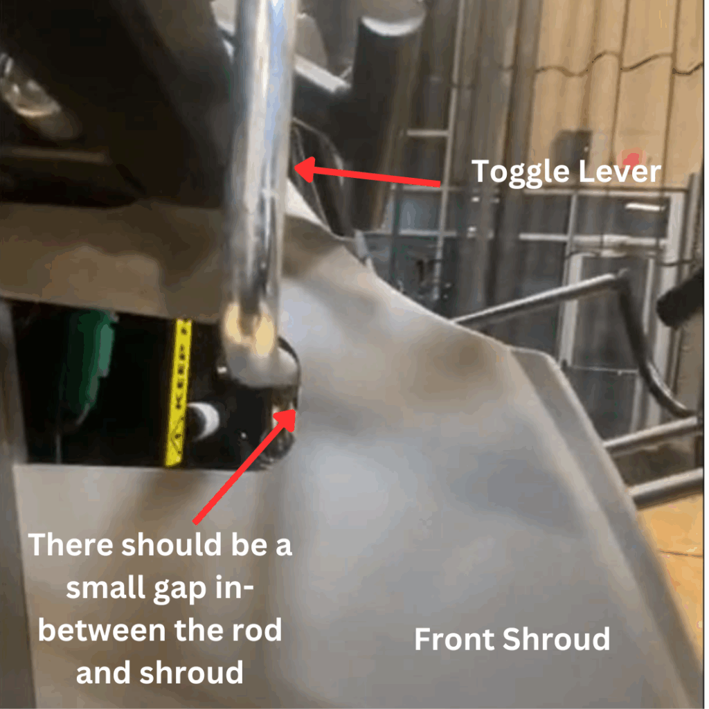 - Espacement du capot et du bras de bascule – Ce problème ne se pose probablement que si les entretoises n’ont pas été réinstallées lors du retrait du capot avant. De plus, la visserie de fixation du capot avant a peut-être été trop serrée. Si vous ne voyez pas de léger espace entre le bras de bascule et le capot, comme illustré ci-dessous, cela peut indiquer un problème